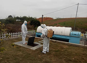 2021年12月22日科然環(huán)境運維組員工為號召國家防控疫情政策,對各個終端和管網的污水池進行全面的清掏、消殺工作。運維組消殺人員配有專業(yè)的防護服、手套、口罩以及專業(yè)的消殺工具。